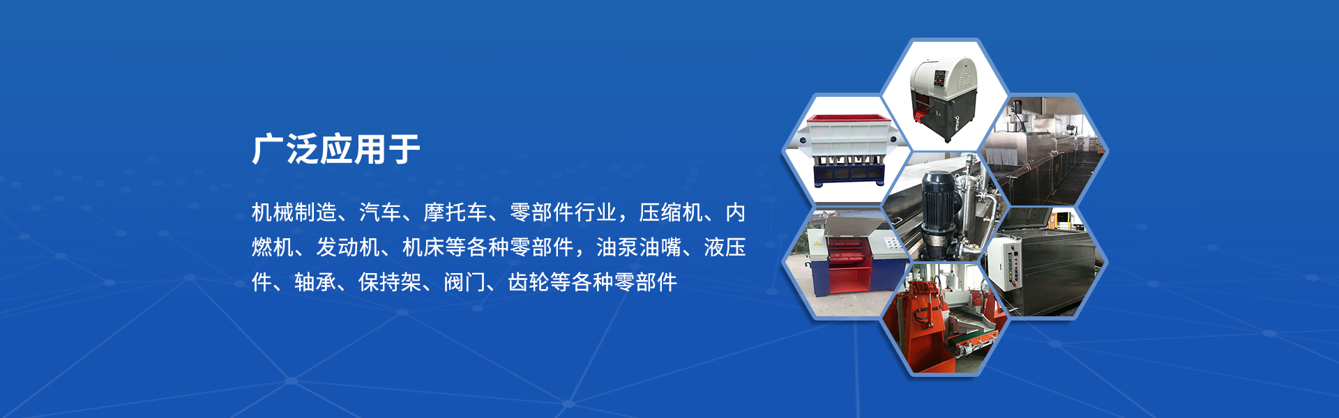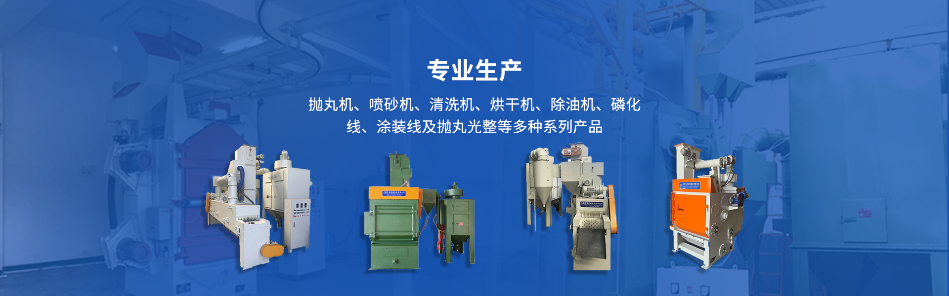 本公司主要产品有抛丸机、喷砂机、清洗机、烘干机、除油机、磷化线、涂装线及抛丸光整等多种系列产品,提供齐全的表面处理材料,深受广大客户的赞赏和信赖。“质量为本,恪守信誉,用户至上”为经营宗旨,注重于研发和实践,经过坚持不懈的努力,积累了丰富的经验,产品畅销国内外大部份地区,深受用户的好评和信赖,热忱欢迎各界广大用户光临洽谈。产品广泛应用于机械制造、汽车、摩托车、零部件行业,压缩机、内燃机、发动机、机床等各种零部件,油泵油嘴、液压件、轴承、保持架、阀门、齿轮等各种零部件。